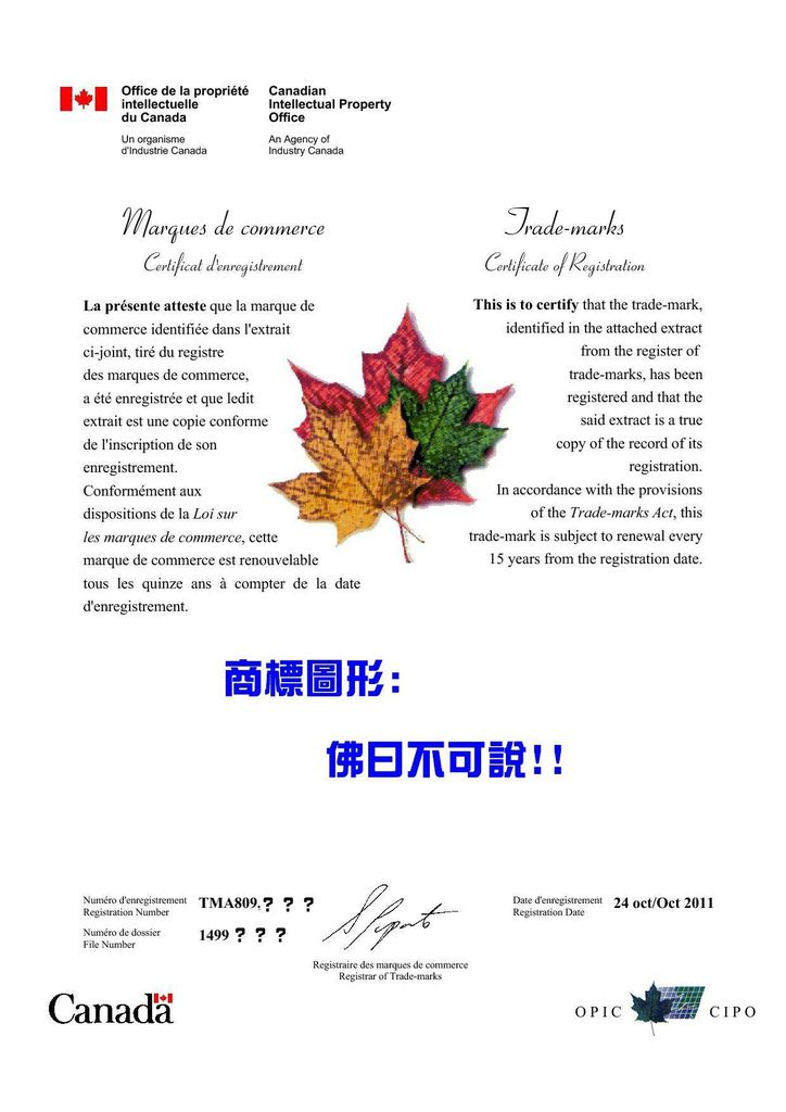 經辦各國商標註冊證書